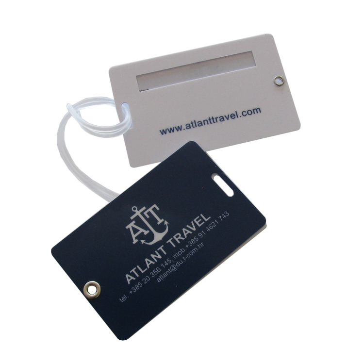 Praktičan i elegantan kruti-tvrdi PVC etui za oznaku prtljage sa vašim logom i plastičnom vrpcom za spajanje sa prtljagom